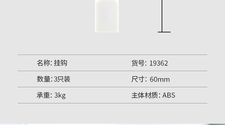 商品名称: 得力(deli)大承重免打孔3kg生活挂钩帖 无痕背胶3只/卡 简约方形 白色19362